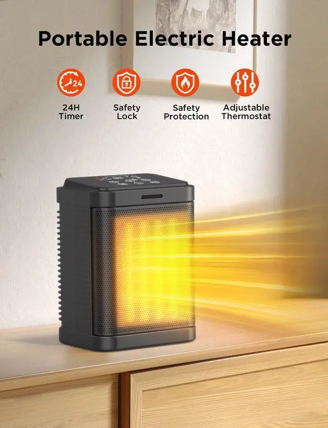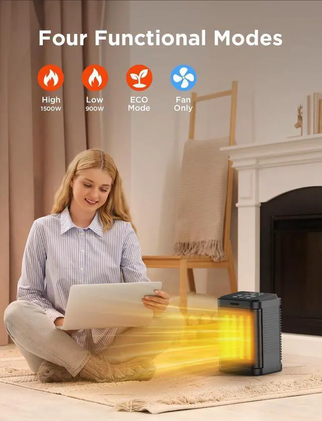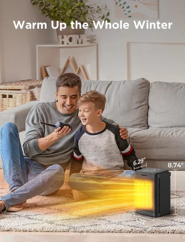 Get Timely Warmth: PTC ceramic heater with powerful fan, power up to 1500W, 2S fast heating, so you can feel the fast and comfortable heat in the cold winter. No assembly required, just plug in and use.