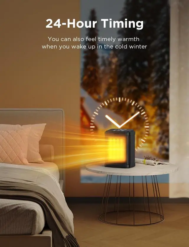 Save More: When you turn on the ECO mode of the heater, the temperature sensor will intelligently adjust the power of the heater based on the room temperature, ensuring warmth while saving you more energy bills. You can also adjust its automatic shutdown time freely through a 24-hour timer to avoid prolonged operation.