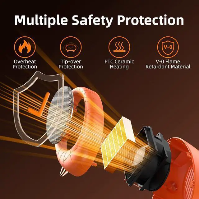 DURABLE MATERIAL: The small space heater uses Class V0 fire-resistant materials avoiding any fire hazard, PTC ceramic heating element make this desk heater more durable