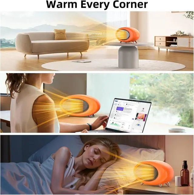 QUIET DESIGNThe noise of the small heater makes is lower than 45dB level, the heater for home is comfortably quiet to use in a bedroom while sleeping. Its also extremely suitable for warming the room while working, studying or watching TV, never worried about being disturbed