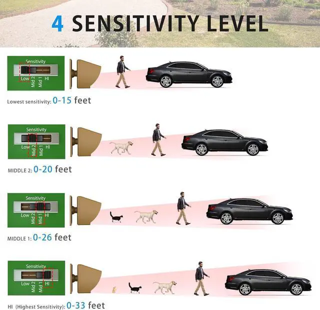 With the solar panel, the sensor is equipped with a rechargeable battery for up to 24 months on a full charge! Easily adjust the sensors sensitivity to avoid interference like leaves or small animals, or expand your security zone to up to 8 additional sensors!