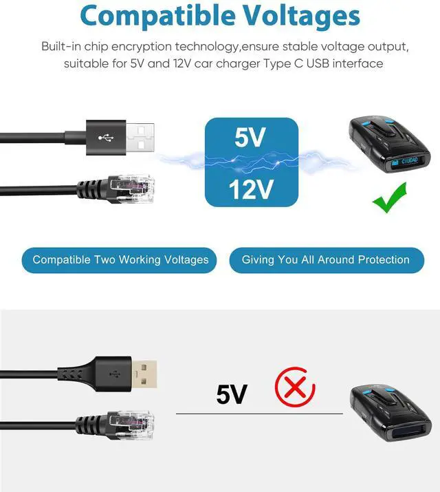 To ensure that the radar detector can be stably turned on when the cable is connected to 5V or 12V USB interfaces