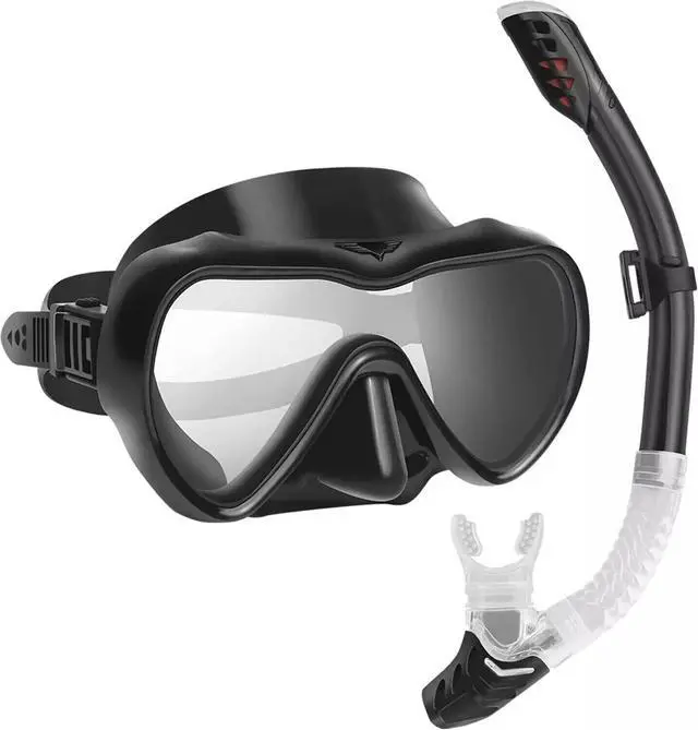 - Dry Top Snorkel with Purge Valve: Our snorkel features a dry top design for easy breathing underwater. It has a float valve to prevent water entry and a one-way purge valve to clear any leaks. The fixed buckle allows for easy attachment to your diving mask.