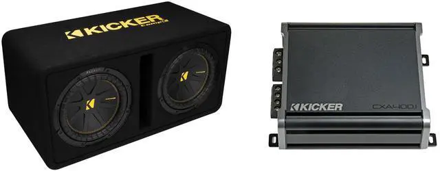 • This bundle includes a powerful Kicker 46CXA4001 CXA4001 - 400-Watt Mono Class D Subwoofer Amp and a Kicker 50DCWC102 Dual CompC 10-inch Subwoofers in Vented Enclosure, 2-Ohm.