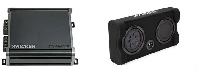 Enhance your car audio experience with this powerful bundle featuring the Kicker 46CXA4001 CXA4001 400-Watt Mono Class D Subwoofer Amp and the Kicker 48TRTP82 TRTP 8-inch Thin Down Firing Subwoofer Enclosure. The CXA4001 Amp boasts efficient Class-D technology, delivering up to 400 watts into one channel with features like variable bass boost, crossovers, and subsonic filter for optimal sound quality. Its compact size and versatile compatibility make for an easy installation process. The TRTP82 Subwoofer Enclosure features a Thin-Mount design combined with Forced-Air Cooling for enhanced durability, providing deep, resonant bass without compromising space.