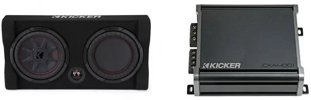 This bundle is designed to enhance your car audio system with powerful bass. It includes a Kicker 46CXA4001 CXA4001 - 400-Watt Mono Class D Subwoofer Amp and a Kicker 48TRTP102 10" Down Firing Sub & Passive Radiator, both providing top-notch sound quality.