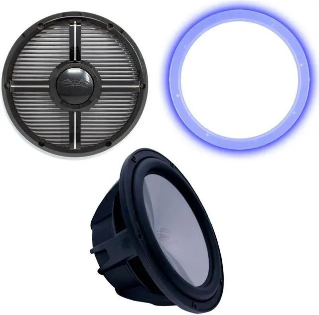 This bundle includes a Wet Sounds REVO10FAS4-B 10" Free Air 4-Ohm Marine Subwoofer, a RGB LED Ring Kit, and Grill