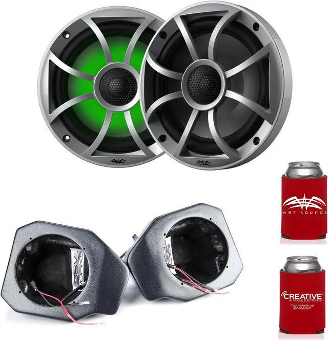 Wet Sounds Recon6-S-RGB 6.5" Silver Grill RGB Marine Speakers with SSV RG4-F65U Ranger XP1000 2018 and up Front Speaker Pods - This bundle is for a 2018 and up Polaris Ranger XP1000. It includes a pair of Wet Sounds RECON6-S-RGB LED 6.5" 60-Watt RMS Coaxial Speakers With Silver XS Grilles, a pair of SSV Works RG4-F65u 6.5" Front Kick Pods For Polaris Ranger XP1000 2018 and up, and a Wet Sounds coozy.