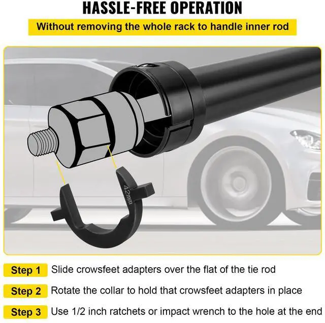Tie Rod Removal Tool: Designed for secure and effectual removal of the inner rod. The inner rod can be easily removed and installed without removing the rack and pinion. Applicable to most domestic and imported vehicles, including cars, pickups, and off-road vehicles.