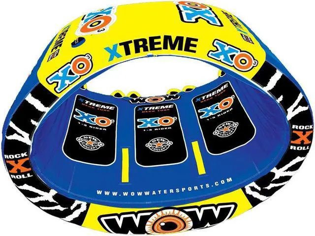 WOW’s most exciting towable yet! Built for 1-3 riders, the XO Extreme is a one of a kind, oval shaped design towable with a rocker-ed bottom to provide the most excitement ever on the water! Because of its patented oval shape design the amount of surface area touching the water is minimal which allows for a fast ride and less drag on your boat (i.e. better gas mileage) as it slips and slides across the wake with ease.KEY_TAB