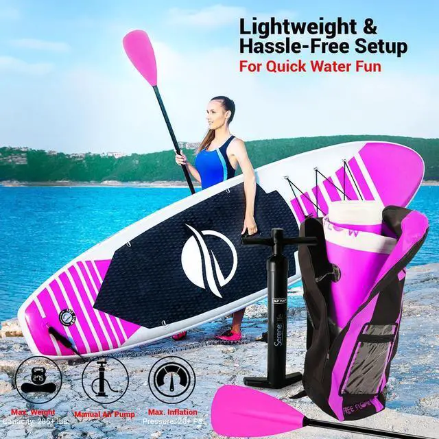 Inflating and deflating is quick and hassle-free, making it easy to roll up and transport in its storage/carry bag. With a max weight capacity of 285+ lbs, this board is strong enough for users of various sizes. Enjoy hours of water adventure with the SereneLife Free-Flow SUP!