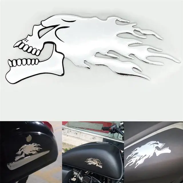 Pair Motorcycle Skull Head Flame Fuel Gas Tank Fairing 3D Emblem Badge Decal L/R