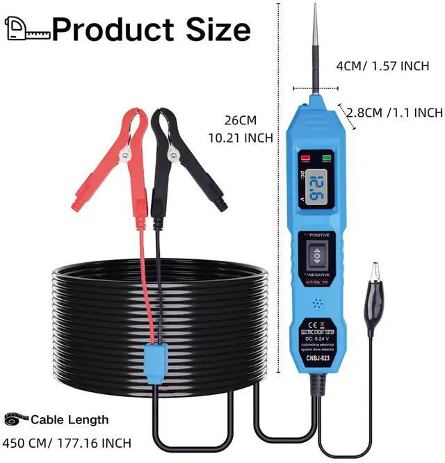 This electric circuit tester is capable of measuring voltage ranging from 6 to 24V. Its precise digital display ensures more accurate readings, making it an essential tool for reliable and precise vehicle electrical diagnostics.