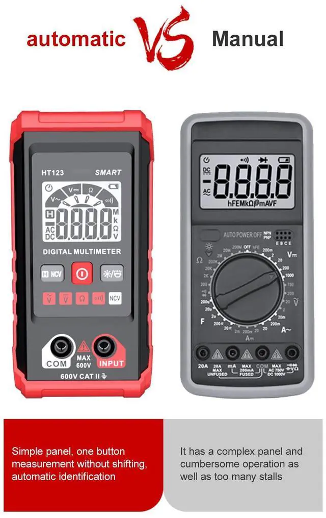 Auto Range Multimeter: intelligent recognition of AC and DC voltage, and automatically switch the range, no need to change gears manually.