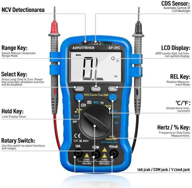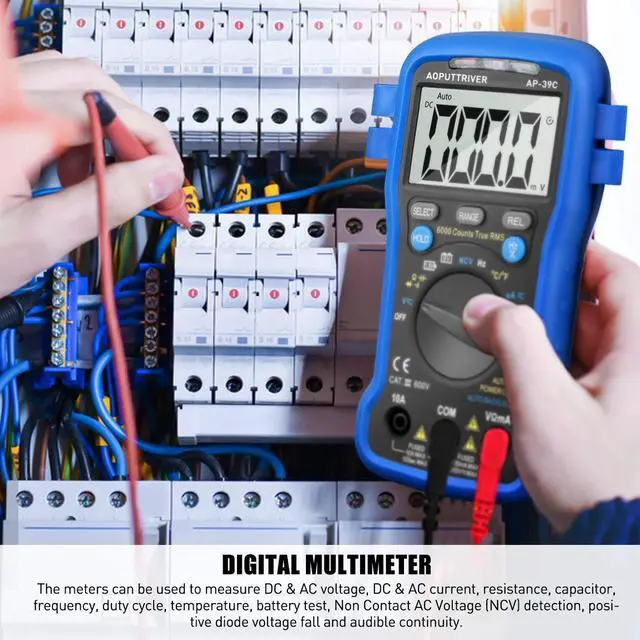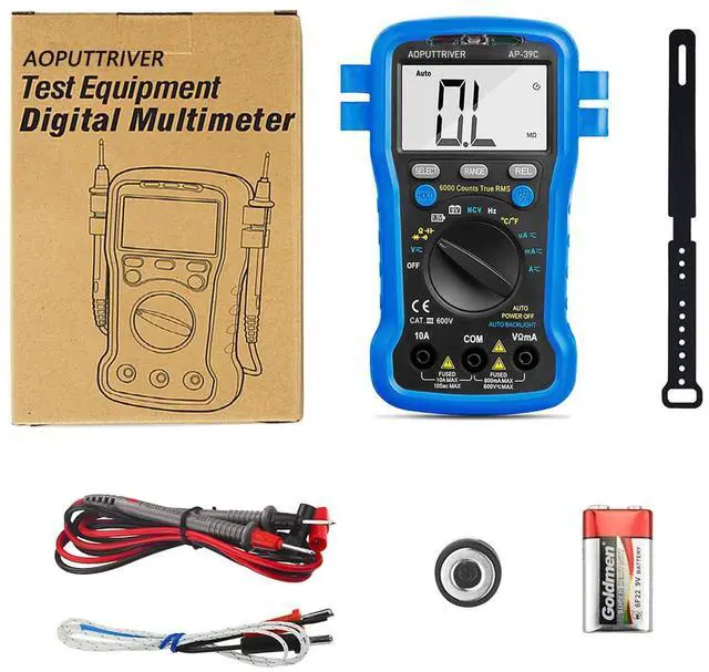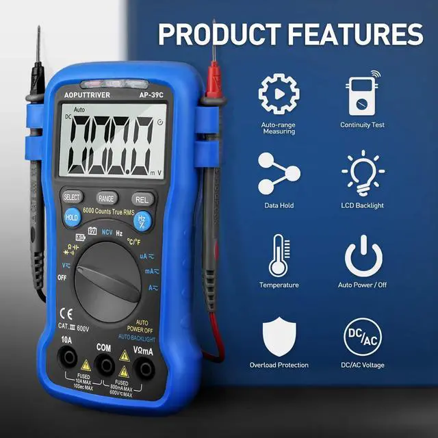 Digital Multimete AP-39C Auto Ranging TRMS Multimeter for AC DC Voltage,Current, Resistance, Capacitance Tester with Temp Battery LED Test Auto Backlit