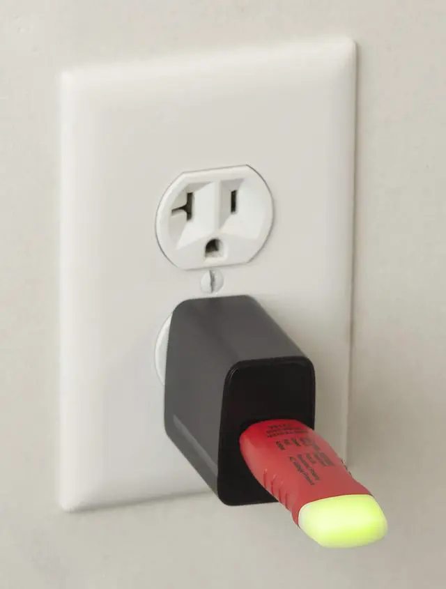 The Gardner Bender GVD-3504 Circuit Alert non-contact voltage tester features both audible (beeping) and visual (360 degree flashing red light) indicators to alert the user of the presence of AC voltage from 50V to 600V.
