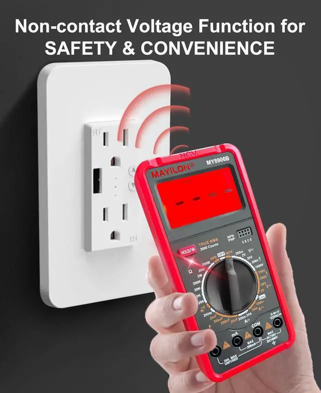 Non-Contact Voltage Measurement: Remove the multimeters probes, rotate the selector to NCV mode, and bring the NCV sensor near the wire, a buzzer sounds when AC voltage is detected, Single-Probe LIVE Measurement: Rotate the selector to LIVE mode and touch the red probe to the wire to identify the live conductor