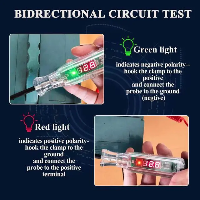 - This circuit light tester only for DC 2.6-32V circuits voltage testing, can't be used for any AC wires or circuits; Do not use beyond the voltage range.