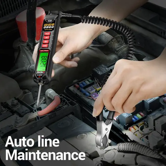 The car maintenance tester is suitable for various circuit tests.AUTO can identify AC voltage,resistance,and switch functions.You can use the multimeter to test fuses or circuits on fog lights,reverse,lights,horns,car starters,air conditioners,audio systems,turn signals,and headlights
