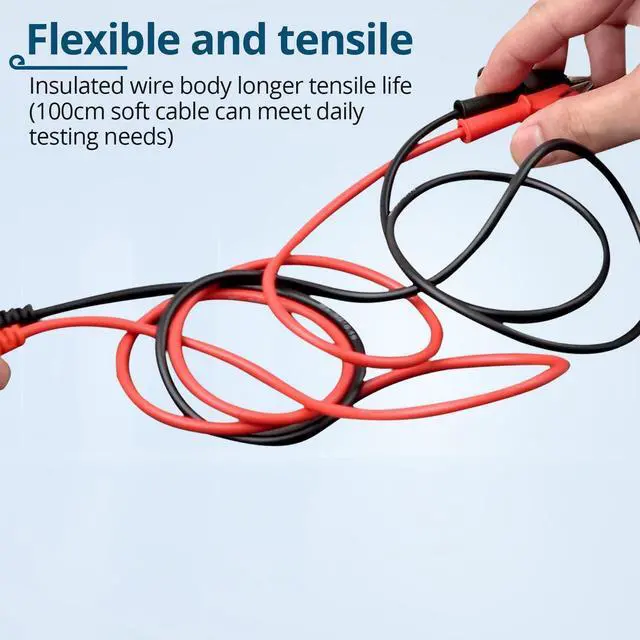 The heavy-duty insulation provides excellent electrical insulation and protection, allowing you to work with confidence in various testing scenarios. Compatible with most multimeters, power supplies, clamp meters, and other electronic testing equipment, these test leads are perfect for electrical engineers, technicians, students, and DIY enthusiasts.
