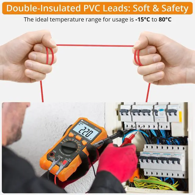 The multimeter leads are made with double insulation and flexible PVC, ensuring a secure and reliable connection. Designed for strong conductivity, low resistance, and no signal loss, these leads provide accurate readings, making them ideal for from industrial applications to automotive diagnostics.
