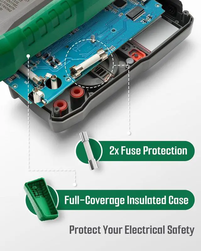 Safety is paramount with dual protection, including a robust rubber sleeve and compliance with CAT III 1000V and CAT IV 600V standards. This ensures reliable protection against electrical hazards, giving users peace of mind.