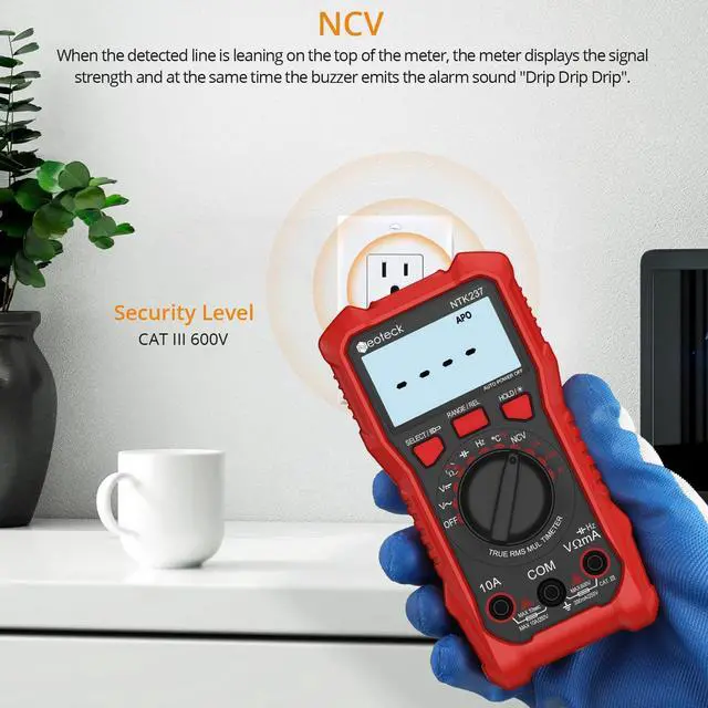 Neoteck voltmeter has the functions of switching manual/automatic range mode, data holding, low power indicator, automatic shutdown(After 15 Minutes without Operation), flashlight lighting, etc, also with 2 pen holders on the back for easy placement and a screwdriver in the package for easy removal.