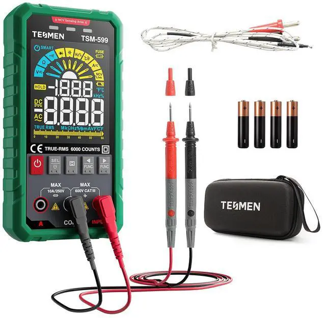 The package includes the TSM-599 multimeter, 2 test leads, a thermocouple, a storage bag, 4 AAA batteries, and a user manual. We provide a 3-year maintenance service and lifetime technical support, ensuring a worry-free after-sales experience. Choose the TSM-599 Smart Digital Multimeter for a reliable, safe, and user-friendly measurement experience.