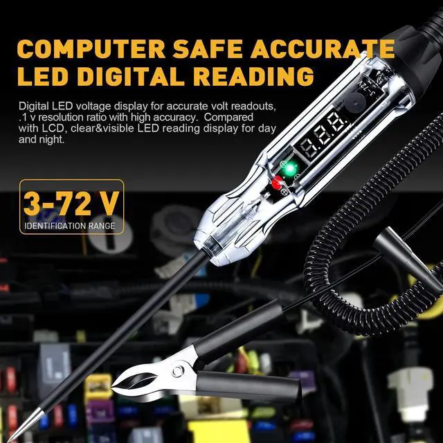Heavy Duty Digital LED Circuit Tester with Voltmeter & Dual Color Polarity Indicate Light,Bidirectional Auto Voltage Tester Electric Light Test Pen