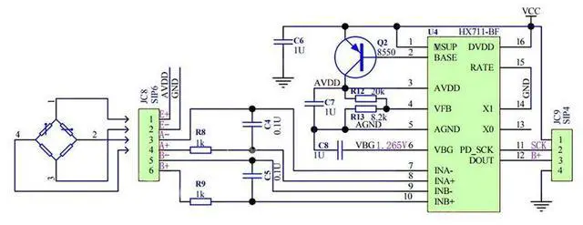 This module uses 24 high-precision A / D converter chip hx711, is designed for high-precision electronic scale and design, with two analog channel input, the internal integration of a gain programmable amplifier 128. Input circuit can be configured to provide an electrical bridge bridge voltage (such as pressure, weight) sensor model is an ideal high-precision, low-cost sampling front-end module