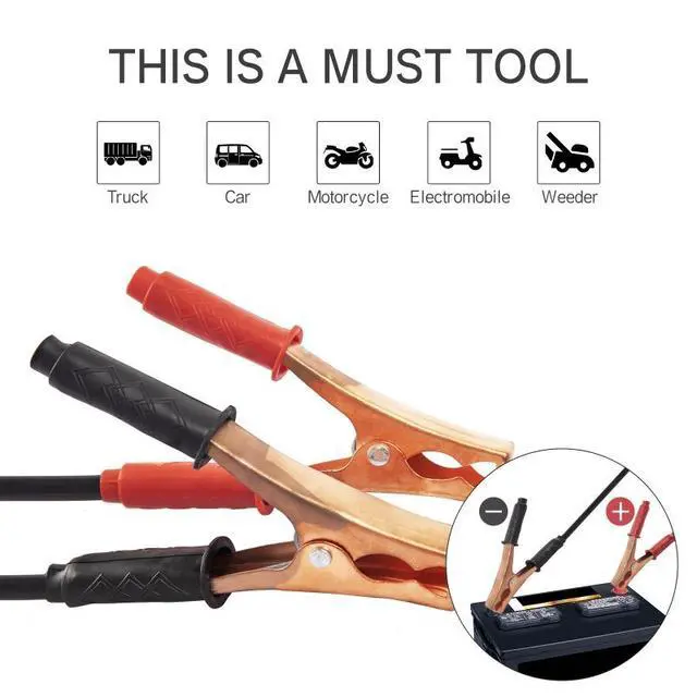 - Tests 6V and 12V batteries up to 1000 CCA, suitable for cars, light trucks, RVs, motorcycles, ATVs, boats and lawn tractor batteries.