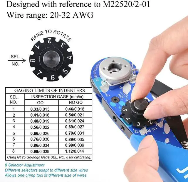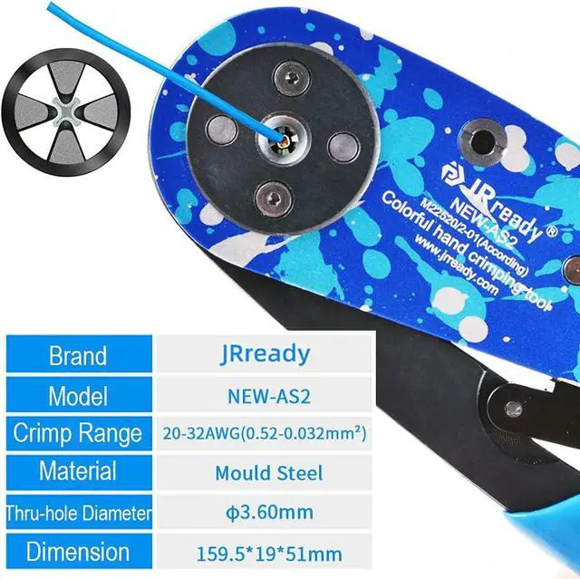Crimper: NEW-ASF1 crimping tool is designed according to MIL-DTL-22520/1-01 and AS22520/1-01, New design wavy handle. Not easy to fall off