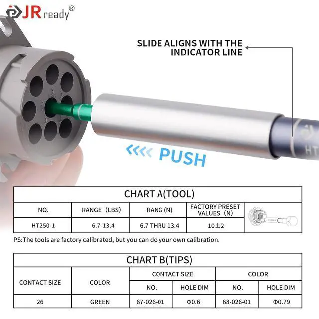 Wide Application:JRready ST5243-HT250 Connector Inspection Tool can be easily used at home to test connectors / terminals / automotive replacement wiring harnesses based on a variety of 26# contacts. With the Jrready contact retention test tools you can see if the retention force in the connector is adequate.