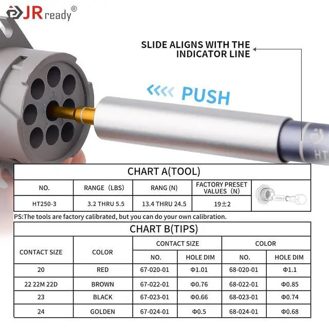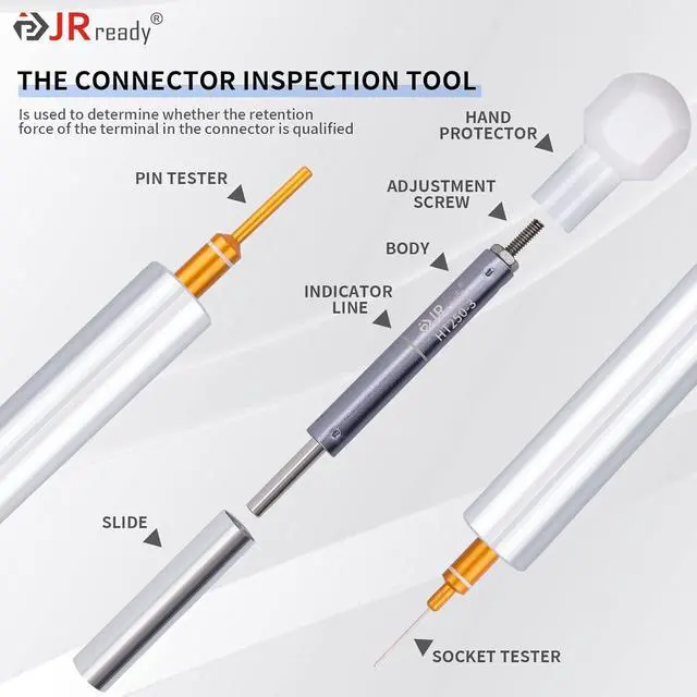 Wide Application:JRready ST5243-HT250 Connector Inspection Tool can be easily used at home to test connectors / terminals / automotive replacement wiring harnesses based on a variety of 26# contacts. With the Jrready contact retention test tools you can see if the retention force in the connector is adequate.