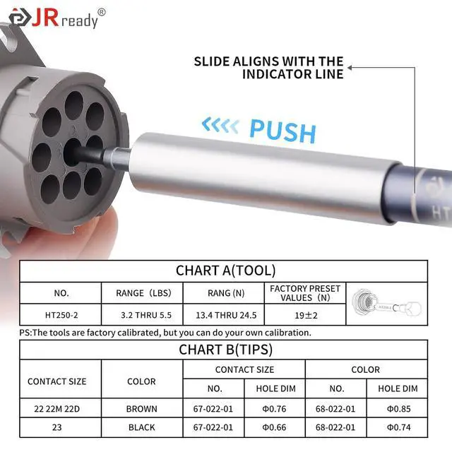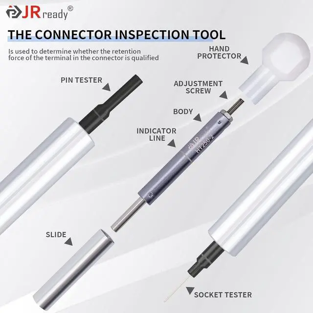 Wide Application:JRready ST5243-HT250 Connector Inspection Tool can be easily used at home to test connectors / terminals / automotive replacement wiring harnesses based on a variety of 26# contacts. With the Jrready contact retention test tools you can see if the retention force in the connector is adequate.