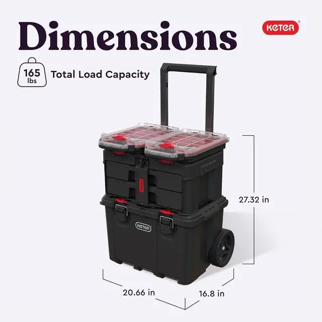 Stack N Roll 4-Piece Rolling Tool Storage System Includes Large Rolling Tool Box, 2-Drawer Tool Box & 2 Tray Organizers | Modular Stackable Tool Storage with Wheels for Garage & Workshop
