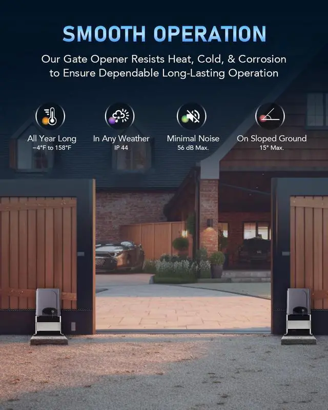 HIGH-QUALITY CONSTRUCTION: The solid steel construction of our electric gate opener is lightweight and durable, while the ABS cover quickly dispatches heat working together with the highly efficient all-copper motor to provide years of dependable service