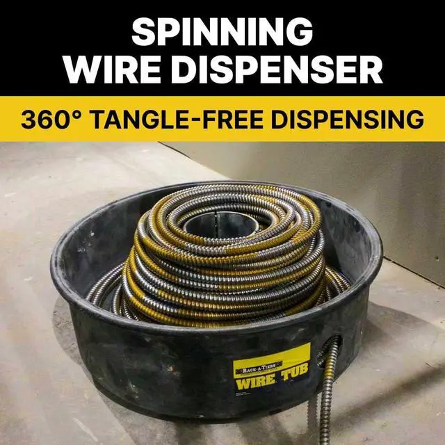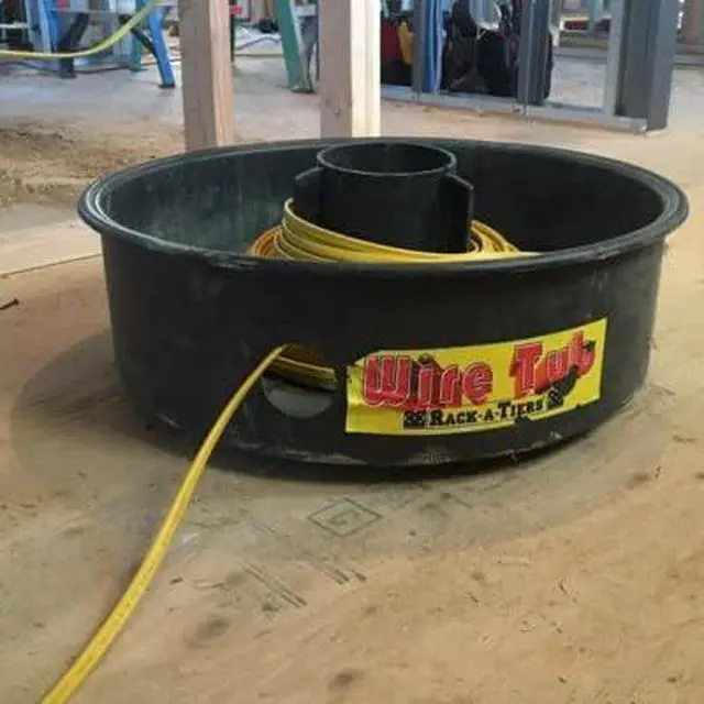 NO TANGLES Having to unwind coils by hand is time consuming and requires extra effort to keep the cable straight. Eliminate the frustration from dealing with cable tangles, knots, or bends by using a Wire Tub. This coil dispenser will improve your work quality by preventing twisted and uneven cable runs.