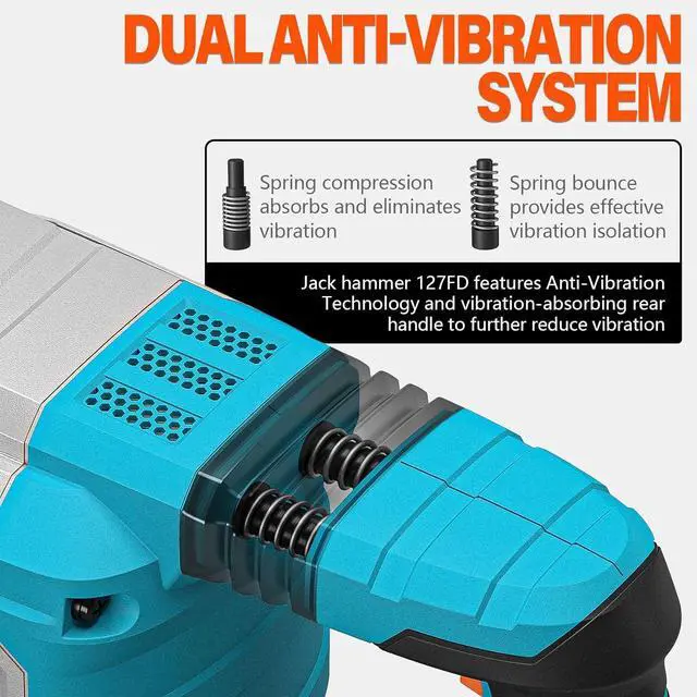 Vibration control: The upgraded Anti-Vibration Technology designed to decrease the vibration effectively, reduce fatigue; Longer air cushion in the hammer mechanism reduces vibration and improves hammer performance
