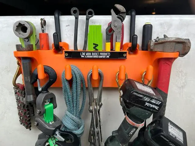 DOUBLE D HOOK SYSTEM - Reinforced double D hooks securely hold primary electrical lineman tools, making this a reliable double d tool rack and lineman tool hanger.