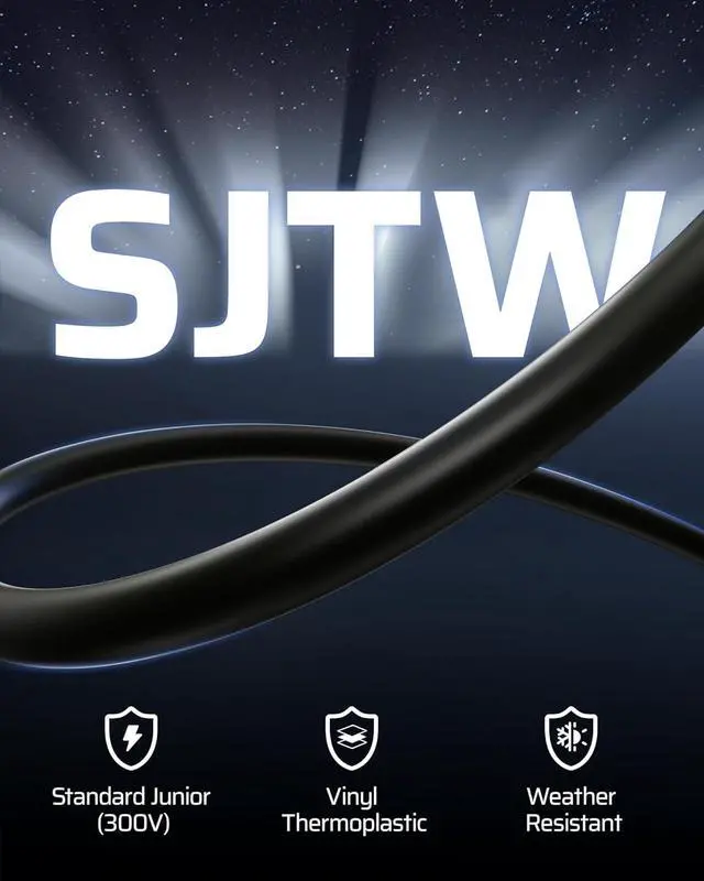 [Weather-Resistant SJTW Cord] Constructed with premium SJTW cable, this 20 amp extension cord resists UV exposure, ozone, moisture, and common garage chemicals.; the flexible, non-kinking cord remains reliable even in low temperatures for both indoor and outdoor use