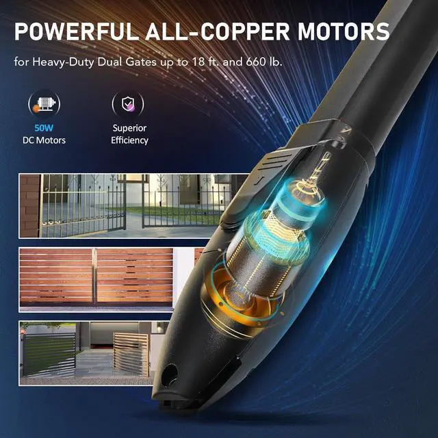 Open & Close Gates with EaseWith energy-efficient 50W motor, this automatic swing gate opener from CO-Z smoothly opens gates up to 660 lb*2. and 18 ft. at 3 ft. per minute