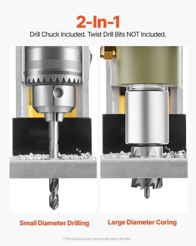 Top-level Magnet: Get ready for unstoppable power! Our electric mag drill generates exceptionally powerful driving force with its 1450W copper motor. It is capable of drilling into the toughest material at 0-800 RPM. Max. Boring Diameter (Coring Drill): 1.6 in / 40 mm; Max. Coring Depth: 2 in / 50 mm