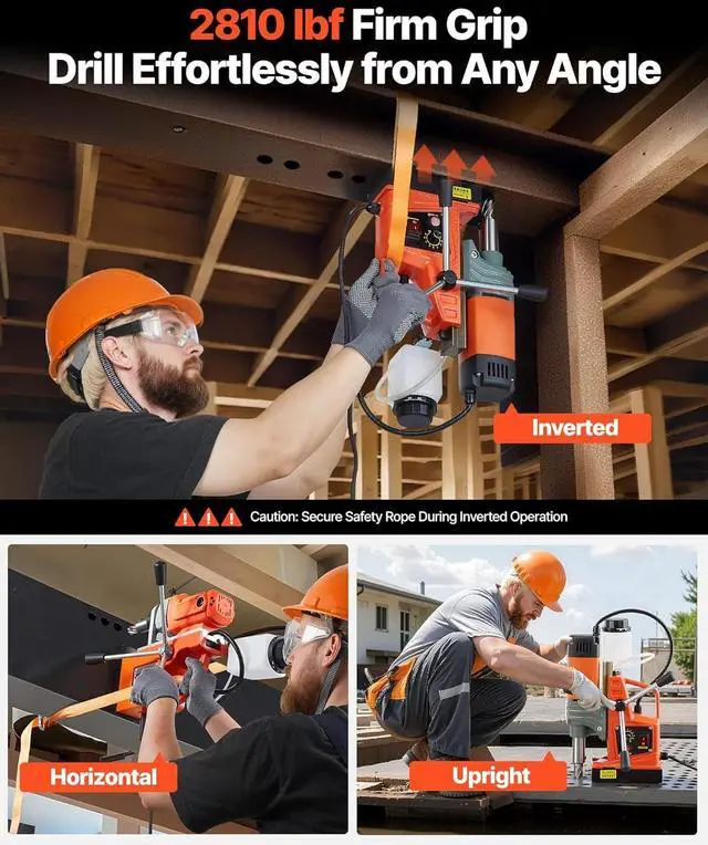 Understand the Power: 2810 lbf / 12500 N of robust force is created by the electromagnetic thickened base, featuring pure iron anchors the mag drill press solidly works at any angle stably during the drilling process. Adjustable 10-speed gears achieve accurate and efficient operation according to different drilling diameter