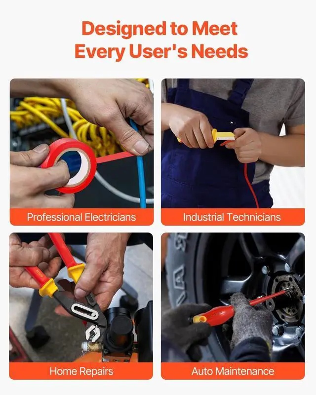 Versatile Use: The insulated tools for electricians meet the diverse needs of various users. Whether you're a professional electrician, industrial technician, or someone doing home or automotive repairs, this set provides the right tools for every job