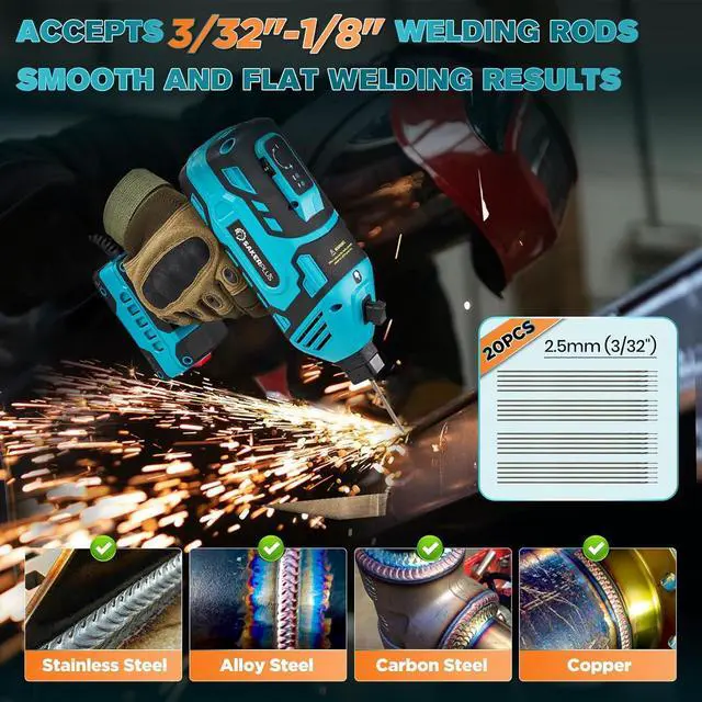 SUPPORTS MULTIPLE ROD SIZESCompatible with welding rods from 3/32" to 1/8" (2.53.2mm), sakerplus stick welder gun adapts to a wide range of materials and tasks. The built-in hot start feature ensures reliable arc ignition, while the anti-stick function prevents rod adhesion, keeping your workflow smooth and frustration-free. Whether you're working on machinery, gates, or home repairs, it offers flexible and stable welding support.