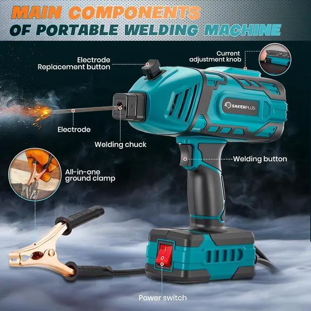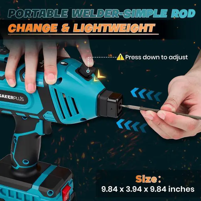 MINI PORTABLE WELDING MACHINEWeighing just 3.75 lbs and sized at 9.84×3.94×9.84 inches, sakerplus mini welding machine 110V is perfect for one-handed use. Its lightweight, compact design reduces fatigue and increases control, especially for overhead or outdoor tasks. Packaged in a portable carry case, its easy to store or take on the go great for job sites, garages, or quick repairs in the field.