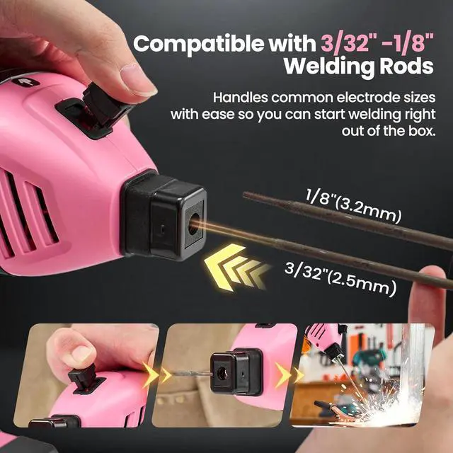 SUPPORTS MULTIPLE ROD SIZESCompatible with welding rods from 3/32" to 1/8" (2.53.2mm), sakerplus stick welder gun adapts to a wide range of materials and tasks. The built-in hot start feature ensures reliable arc ignition, while the anti-stick function prevents rod adhesion, keeping your workflow smooth and frustration-free. Whether you're working on machinery, gates, or home repairs, it offers flexible and stable welding support.