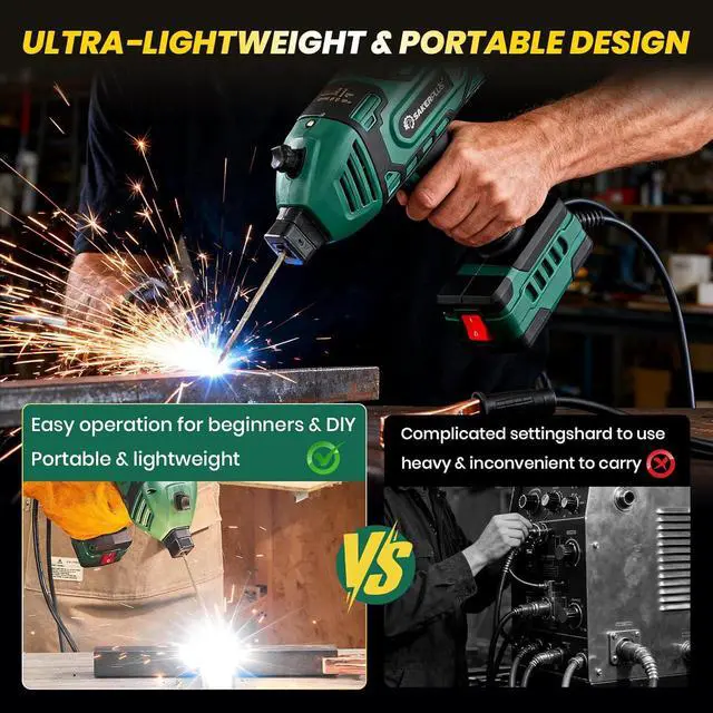 3. MINI PORTABLE WELDING MACHINEWeighing just 3.75 lbs and sized at 9.84×3.94×9.84 inches, sakerplus mini welding machine 110V is perfect for one-handed use. Its lightweight, compact design reduces fatigue and increases control, especially for overhead or outdoor tasks. Packaged in a portable carry case, its easy to store or take on the go great for job sites, garages, or quick repairs in the field.