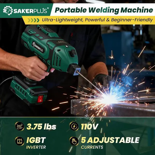 1. PORTABLE WELDER WITH INTELLIGENT IGBT INVERTER TECHNOLOGYSakerPlus portable welding machine utilizes cutting-edge IGBT inverter technology to deliver stable output and smooth arc starts, even on 110V household power. With high no-load voltage and real-time current compensation, it minimizes spatter, sticking, and burn-through resulting in cleaner, more controlled welds. Whether you're a beginner or a seasoned welder, enjoy consistent performance and easy operation every time.